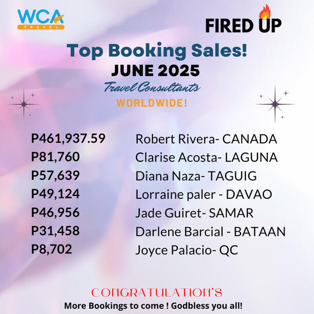 Wca Travel a duly registered company, established in the Philippines in 2015 and became notable brand in travel and tourism industry, with rapidly growing number of independent affiliates across the globe who are supported through our exclusive trainings & events and rewarded for using and promoting the company products & services.Wca Travel Growing family now present in over 80 countries worldwide.We are now DOT & IATA Accredited!